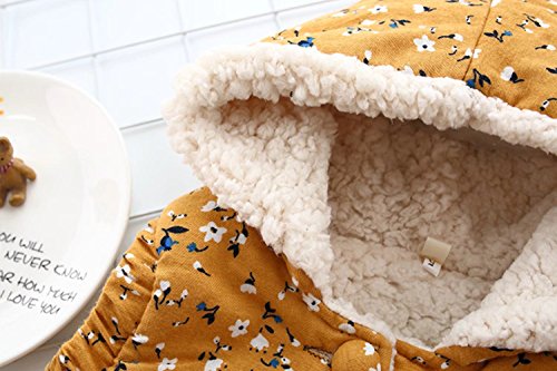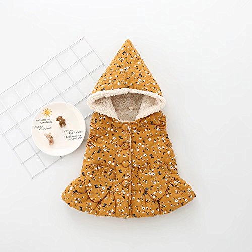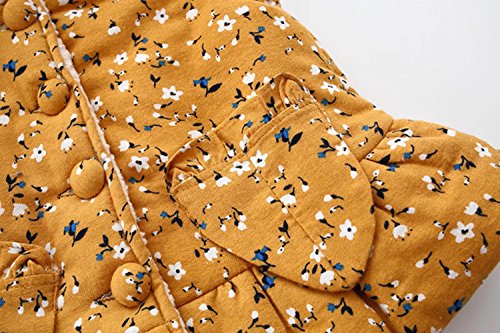 Pojour ベビー服 子供服 女の子 男の子 冬秋 防寒 厚いコート 可愛い小花柄 厚手 長袖 暖かいベスト ベビールームウェア 普段着 カジュアル 旅行 記念日 プレゼント 黄色