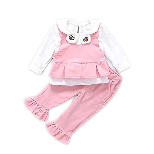 子供上下セット服 女の子 服 長袖 秋 Pojour Tシャツ&パンツ 可愛い蜂ベビールームウェア 子供3セット 丸首 普段着 カジュアル スポーツ 旅行 記念日 プレゼント ピンク