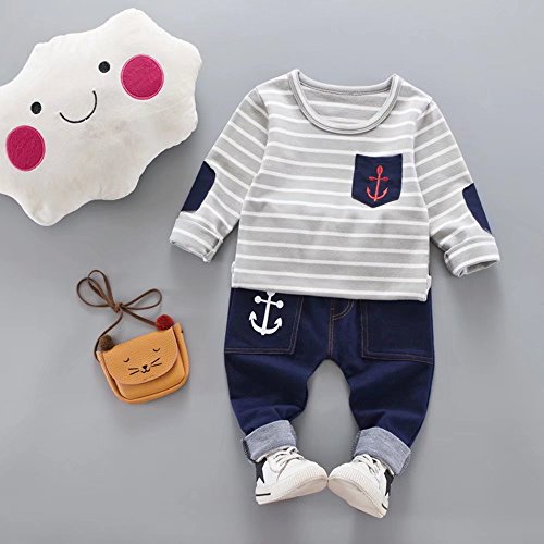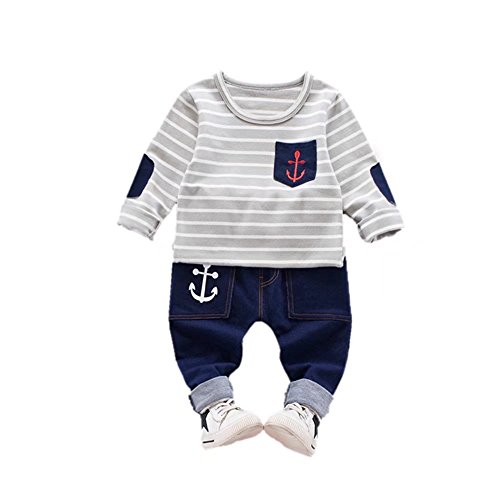 子供上下セット服 男の子 女の子 服 長袖 秋 Pojour Tシャツ&ロングパンツ 可愛いストライプ ベビールームウェア 子供 丸首 普段着 カジュアル スポーツ 旅行 記念日 プレゼント グレー