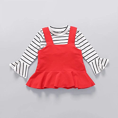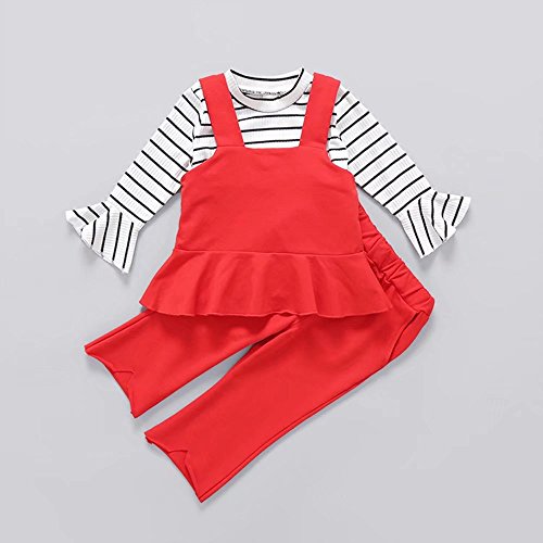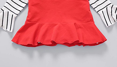 子供上下セット服 女の子 服 長袖 秋冬 厚手 Pojour Tシャツ&ロングパンツ 可愛いストライプ 暖かい ベビールームウェア 子供3セット 丸首 普段着 カジュアル スポーツ 旅行 記念日 プレゼント 赤