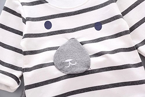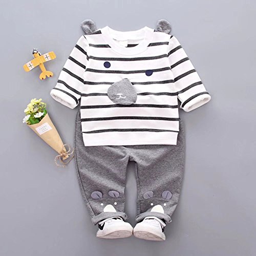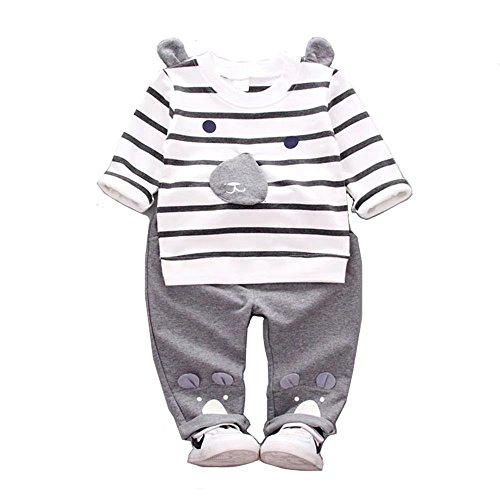 子供上下セット服 男の子 女の子 服 長袖 秋 Pojour Tシャツ&パンツ 可愛いストライプクマ ベビールームウェア 子供 丸首 普段着 カジュアル スポーツ 旅行 記念日 プレゼント グレー