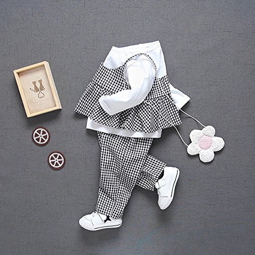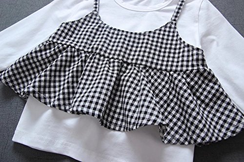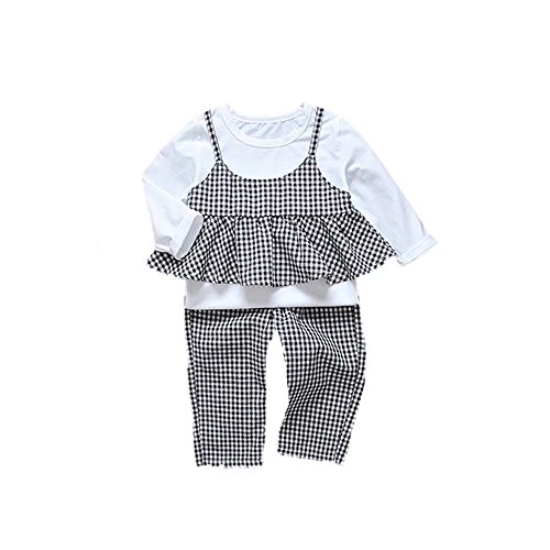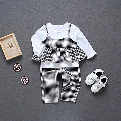子供上下セット服 女の子 服 長袖 秋 Pojour Tシャツ&ロングパンツ 可愛いキャミソー ルグリッドブラウス 暖かい ベビールームウェア 子供3セット 丸首 普段着 カジュアル スポーツ 旅行 記念日 プレゼント ブラック