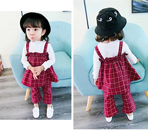 子供上下セット服 女の子 服 長袖 秋 Pojour Tシャツ&ロングパンツ 可愛いキャミソー ルグリッドブラウス 暖かい ベビールームウェア 子供3セット 丸首 普段着 カジュアル スポーツ 旅行 記念日 プレゼント ブラック