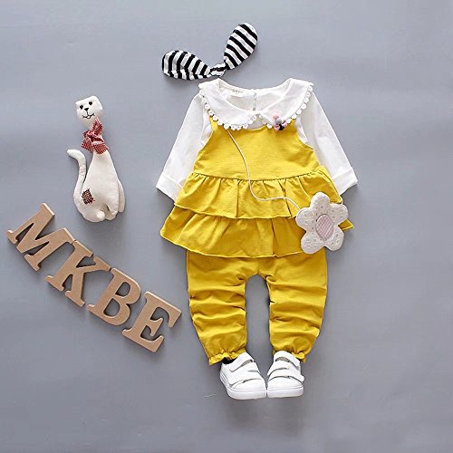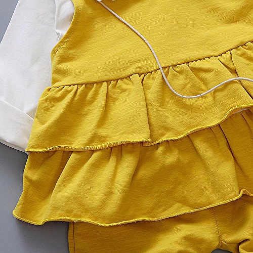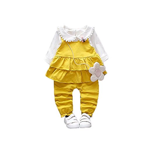 ベビー服 女の子ドレス 子供服 Pojour 冬秋 Tシャツ+ベスト+パンツ 可愛い3セット 防寒 長袖 無地 オシャレ 綿 通園 発表会 旅行 記念日 プレゼント 黄色
