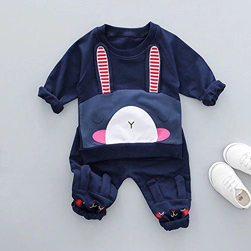 Pojour ベビー服 女の子男の子 可愛い兎上下セット キッズ 赤ちゃんパジャマ 丸首 シャツ+ロングパンツ スポーツスーツ 長袖 春秋 出産祝い