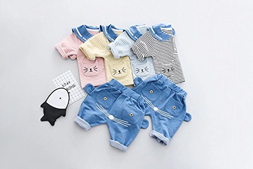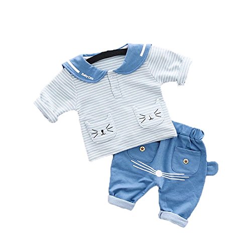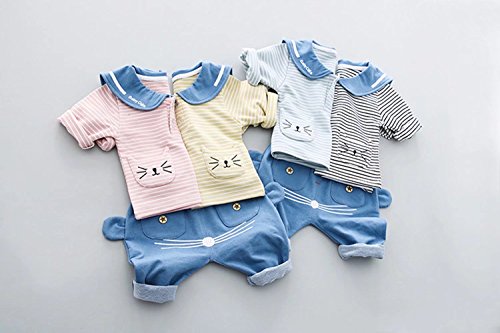 Pojour ベビー服 女の子男の子 可愛い上下セット キッズ海軍風のストライプスーツ 赤ちゃんパジャマ 丸首 シャツ+ロングパンツ スポーツスーツ 長袖 春秋 出産祝い