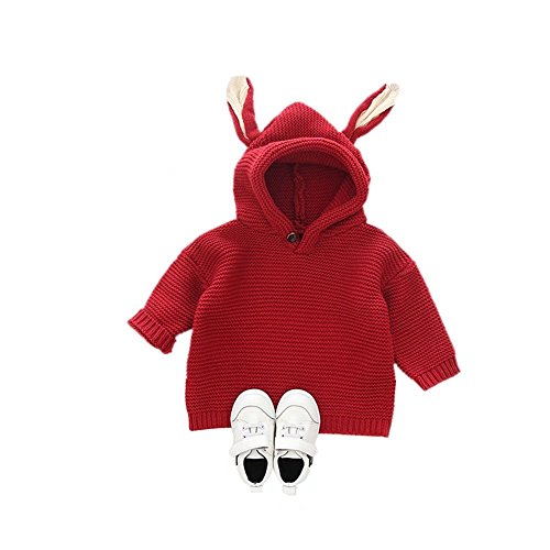 Pojour ベビー服 子供服 女の子 冬 防寒 おしゃれフード付きセーター かわいいブラウス 厚手 長袖 暖かい ベビールームウェア 普段着 カジュアル 旅行 記念日 プレゼント 赤