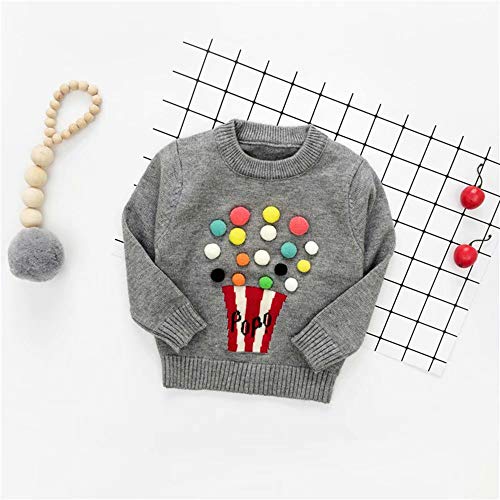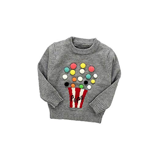 Pojour ベビー服 子供服 女の子ニットセーター 冬 防寒 かわいいポップコーントップス おしゃれ 暖かい 厚手 綿 ベビールームウェア 普段着 カジュアル 旅行 記念日 プレゼント 丸首 グレー