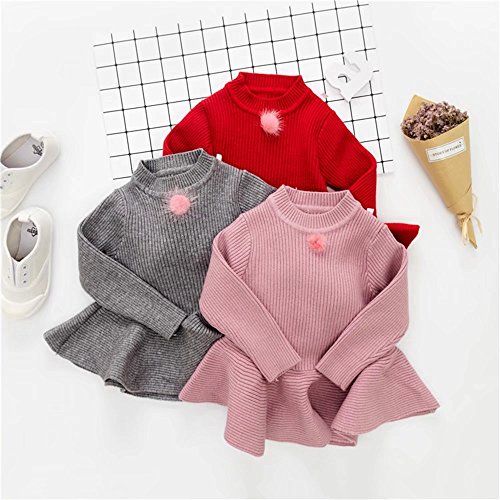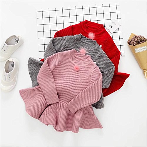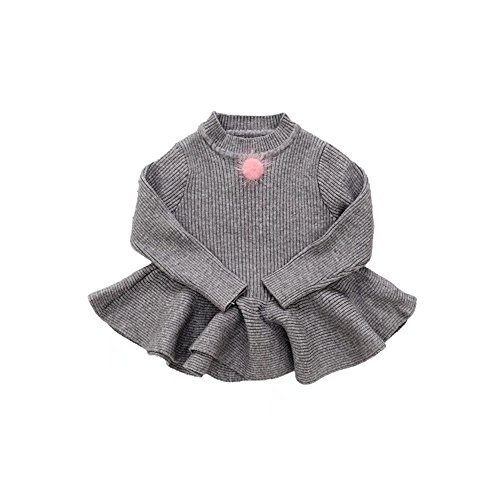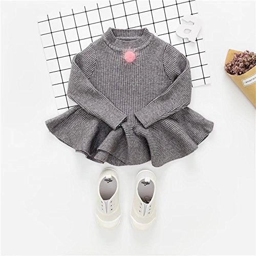 ベビー服 女の子ワンピース 子供服 Pojour 可愛いセーター 無地スカート長袖ドレス オシャレ 秋 綿 通園 発表会 旅行 記念日 プレゼント グレー