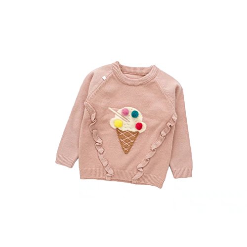 Pojour ベビー服 子供服 女の子ニットセーター 冬 防寒 かわいいアイスクリームセーター プルオーバー おしゃれトップス 暖かい 綿 厚手 ベビールームウェア 普段着 カジュアル 旅行 記念日 プレゼント 丸首