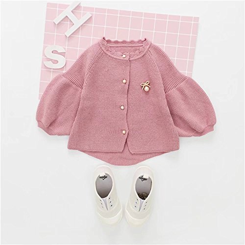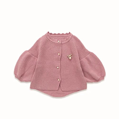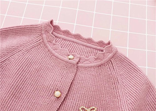 Pojour ベビー服 子供服 女の子ニットカーディガンセーター 冬 防寒 かわいい無地トップス おしゃれ 暖かい 厚手 綿 ベビールームウェア 普段着 カジュアル 旅行 記念日 プレゼント 丸首 ピンク