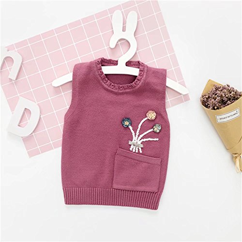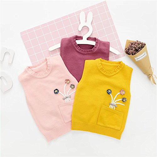 Pojour ベビー服 子供服 女の子ベスト ニットセーター 冬 防寒 かわいい花トップス おしゃれ 暖かい 厚手 綿 ベビールームウェア 普段着 カジュアル 旅行 記念日 プレゼント 丸首