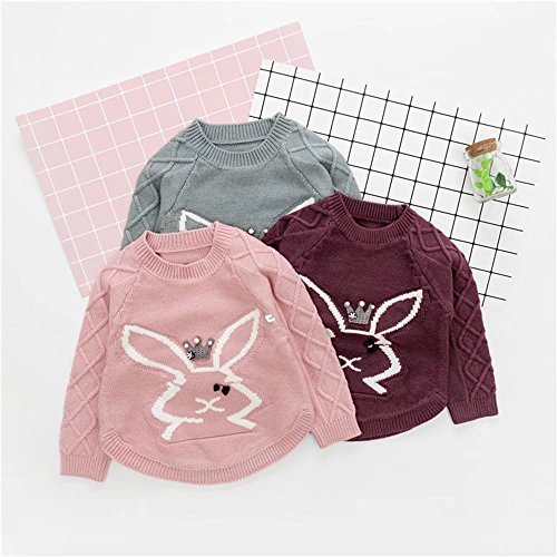 Pojour ベビー服 子供服 女の子ニットセーター 冬 防寒 かわいいウサギトップス おしゃれ 暖かい 厚手 綿 ベビールームウェア 普段着 カジュアル 旅行 記念日 プレゼント 丸首 黄色