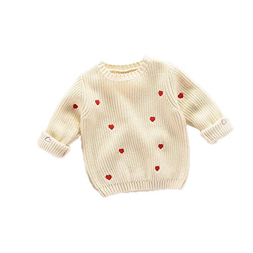Pojour ベビー服 子供服 女の子ニットセーター 冬 防寒 かわいいハートセーター おしゃれ 暖かい 厚手 綿 ベビールームウェア キッズ 丸首 子供 ガールズ トップス