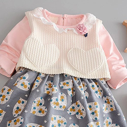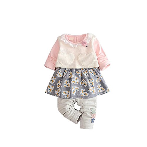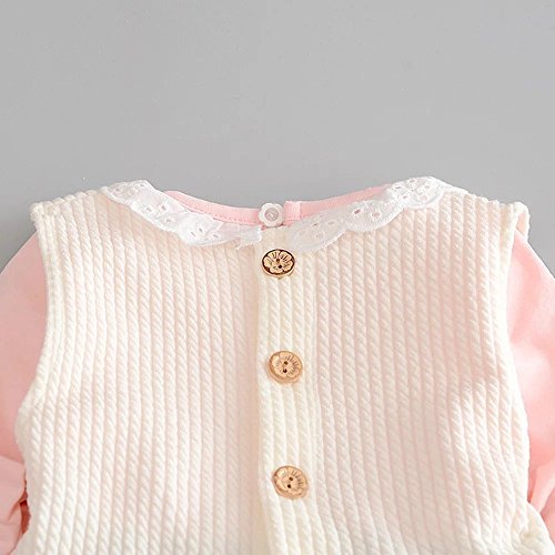 Pojour 春 0-2歳 2-7歳女の子可愛いスカート キッズ上下セット 綿 通気 ピンク(80cm)