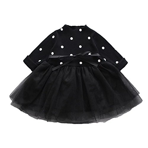 Pojour 春 0-2歳 2-7歳キッズスカート 女の子可愛いドレス 通気 綿 黒(70cm)