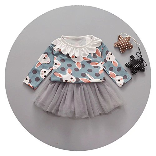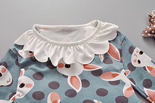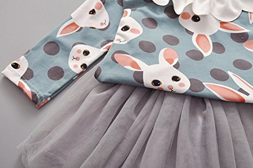 Pojour 春 0-2歳 2-7歳女の子可愛いドレス キッズスカート 漫画ウサギ 通気 綿 グリーン(100cm)