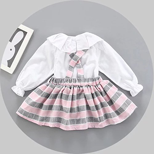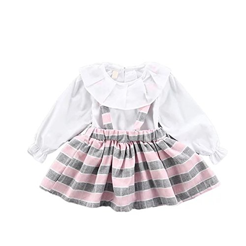 Pojour 春 0-2歳 2-7歳女の子可愛いスリングスカート 長袖ドレス 通気 綿 ピンク(70cm)