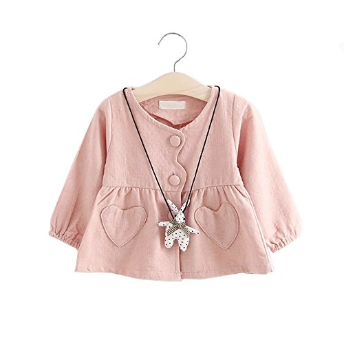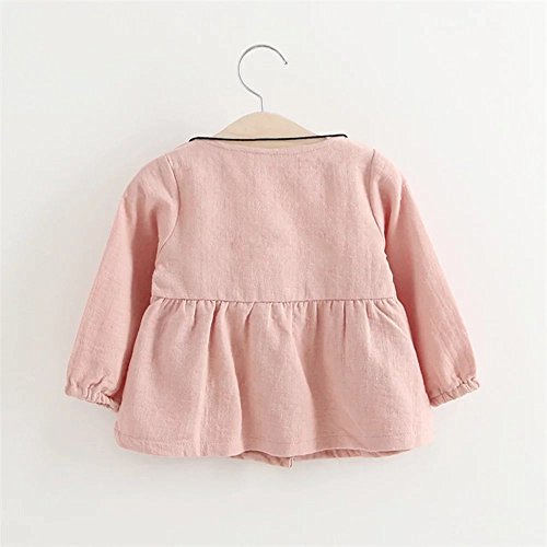 Pojour 春 0-2歳 2-7歳女の子可愛いドレス 長袖スカート 前開き 通気 綿 ピンク(90cm)
