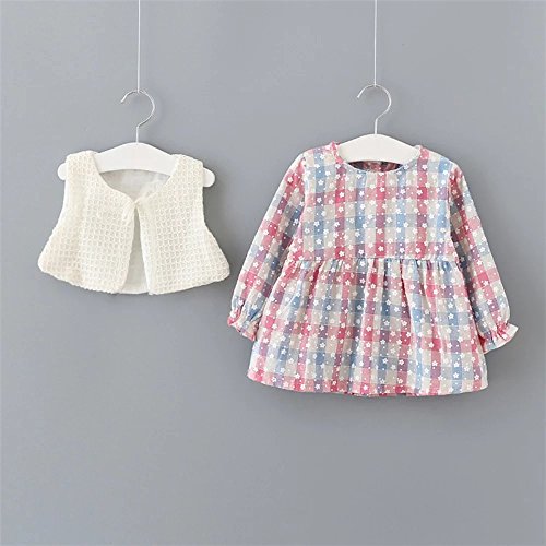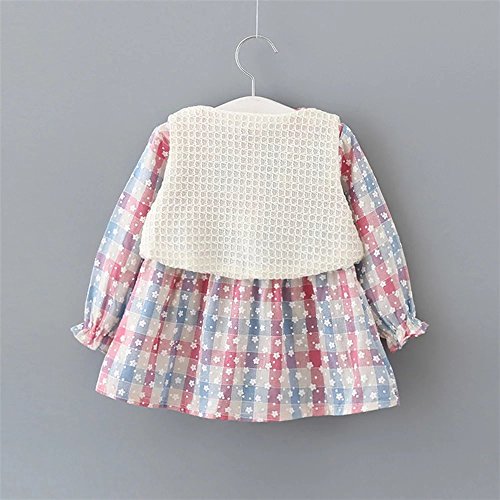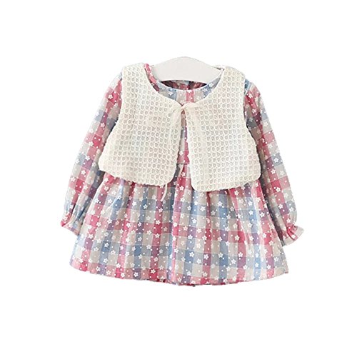 Pojour 春 0-2歳 2-7歳女の子可愛いドレス 長袖スカート 2セット 通気 綿 ピンク(90cm)