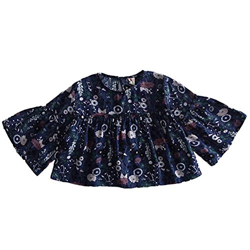 Pojour 春 0-3歳女の子可愛いフローラルドレス 長袖スカート 通気 綿 黒(90cm)