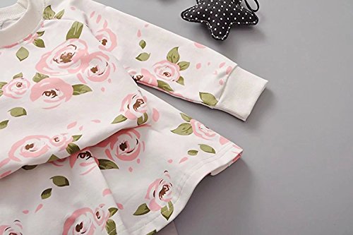 Pojour 春 0-2歳 2-7歳女の子可愛いドレス キッズスカート 2セット 漫画花 通気 綿 ピンク(90cm)