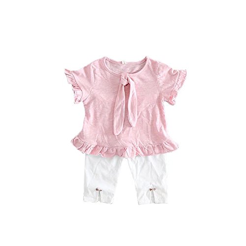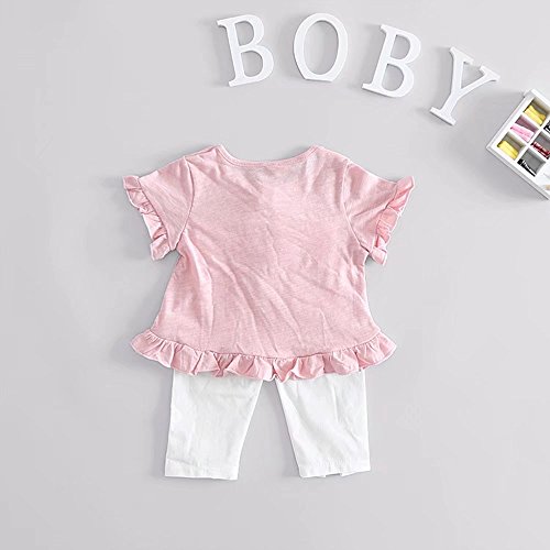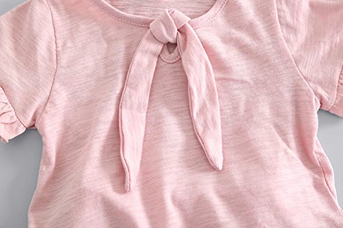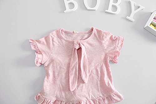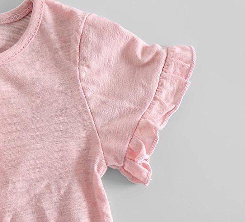 夏ベイビー服 女の子Tシャツ Pojour 1-6歳キッズ用かわいい無地2セット 子供ギフト 綿 通気 ピンク (90cm)