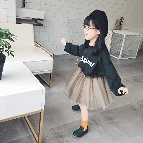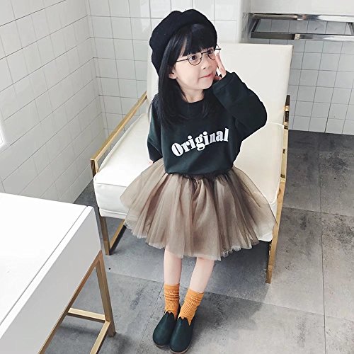 ベビー服 女の子スカート 子供服 Pojour 可愛いTシャツ+チュールスカート 2セット レトロ無地スカート 長袖ドレス オシャレ 秋 綿 通園 発表会 旅行 記念日 プレゼント