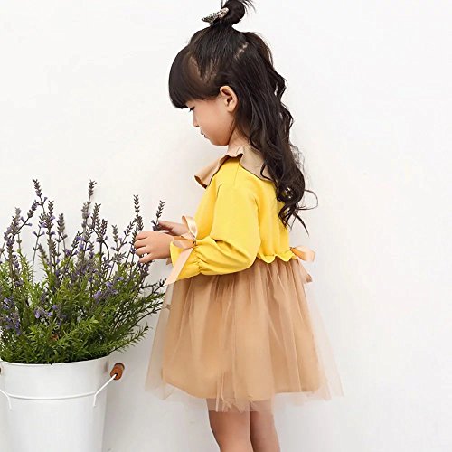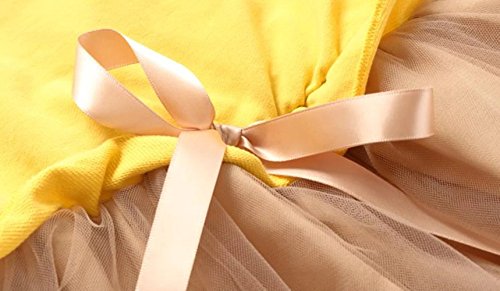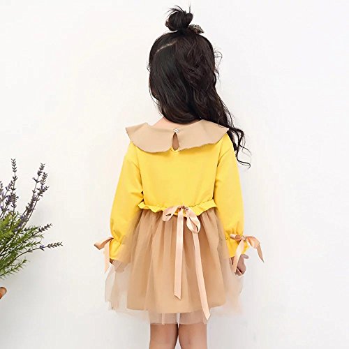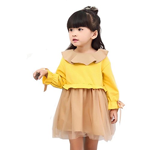 Pojour 春 1-6歳女の子向き ドッキングチュールワンピース 子供かわいいプリンセスドレス 黄色(100cm)