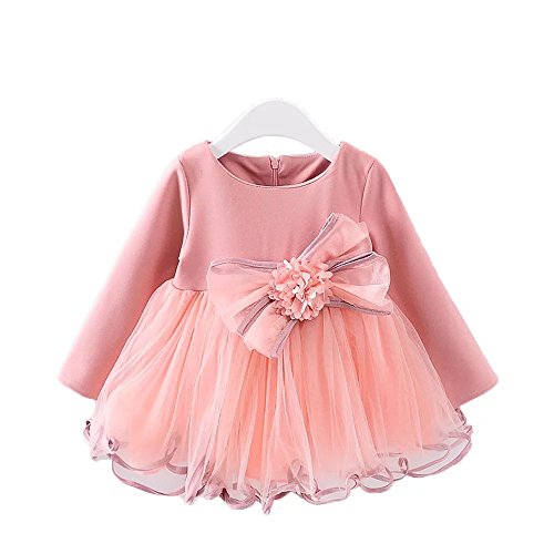 Pojour 春 0-6歳キッズスカート 女の子可愛いドレス 通気 綿 チュールワンピース ピンク(100cm)