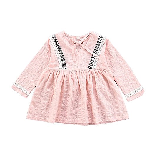 Pojour 春 0-7歳キッズスカート 女の子ドレス 通気 綿 可愛いワンピース ピンク(80cm)