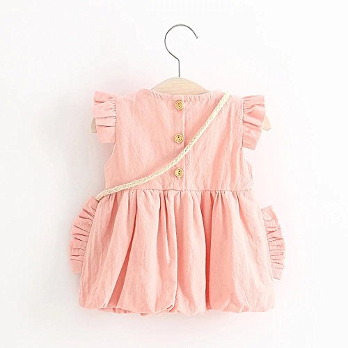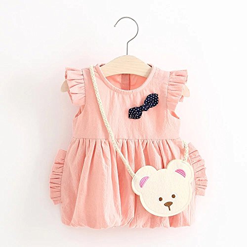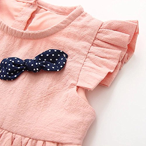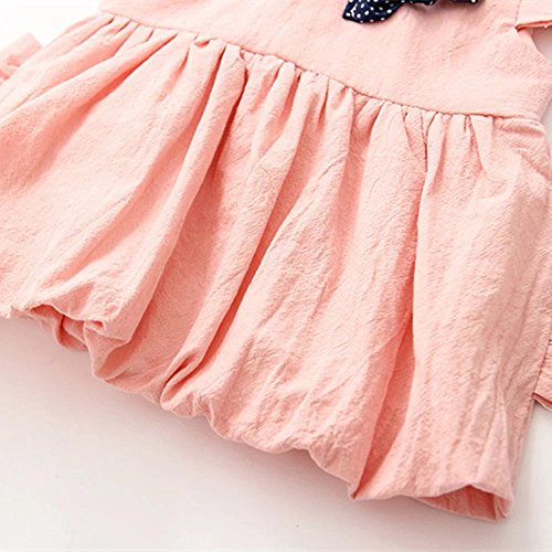 Pojour 夏 1-6歳キッズワンピース 子供かわいいドレス プリンセスドレス 通気 綿 ピンク(70cm)