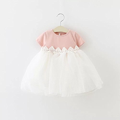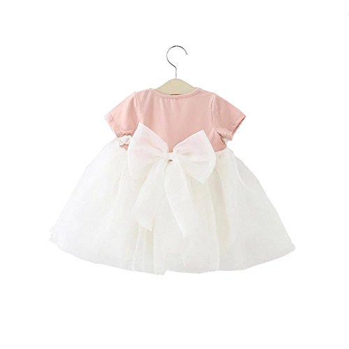Pojour 夏 1-6歳キッズドレス 子供かわいいチュールワンピース プリンセスドレス 通気 綿 可愛いリボン付き ピンク(100cm)