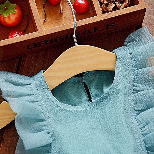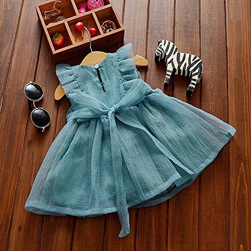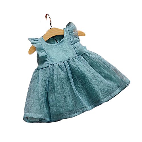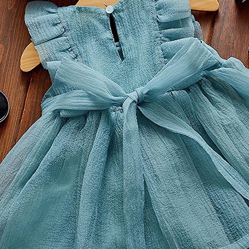 Pojour 夏 1-6歳キッズドレス 子供かわいいチュールワンピース 袖無し 通気 綿 青(100cm)