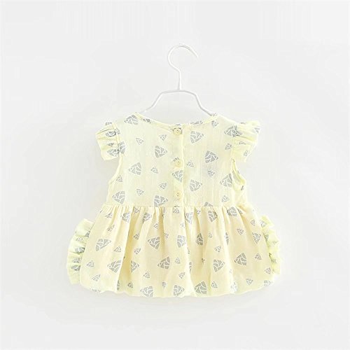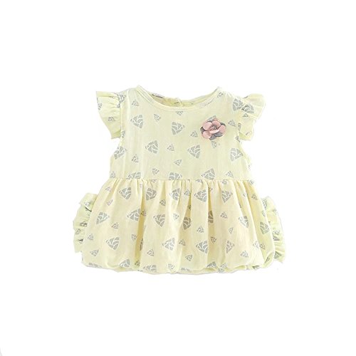 Pojour 夏 1-6歳キッズドレス 子供かわいいワンピース 半袖 通気 綿 黄色(100cm)