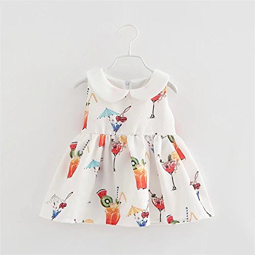 Pojour 夏 1-6歳キッズドレス 子供かわいいワンピース 袖無し 通気 綿 白(70cm)