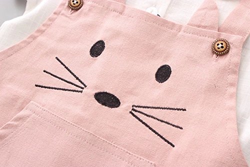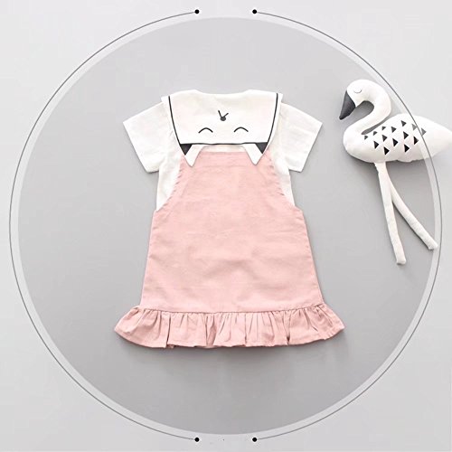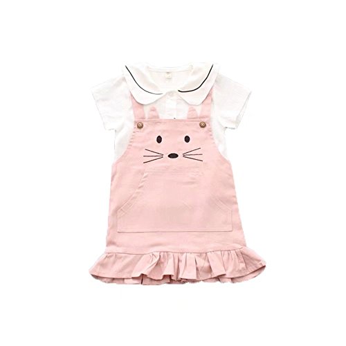 Pojour 夏 1-6歳キッズドレス 子供かわいいキャミソール+Tシャツ 2セット 通気 綿 ピンク(70cm)
