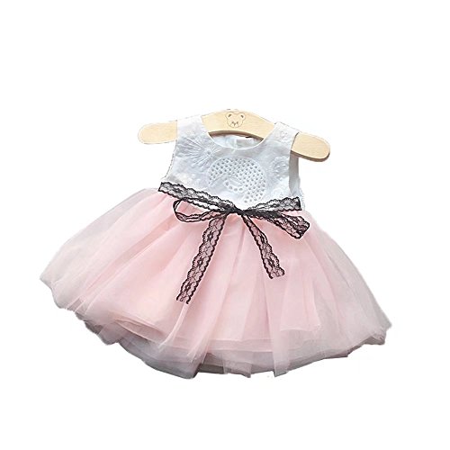 Pojour 夏 1-6歳キッズドレス 子供かわいいチュールワンピース 半袖 通気 綿 ピンク(80cm)