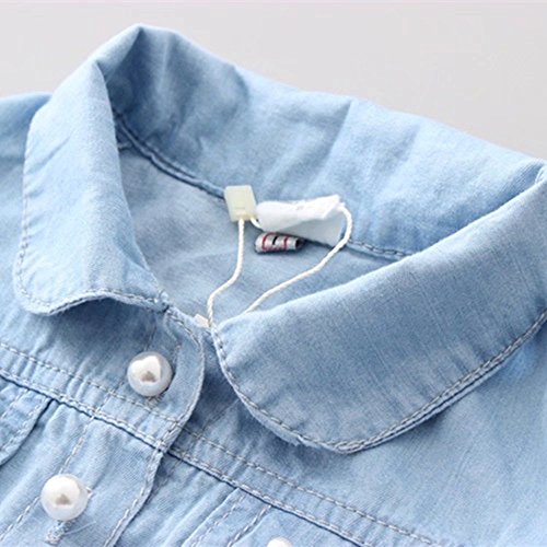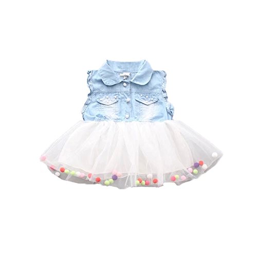 Pojour 夏 1-6歳キッズドレス 子供かわいいチュールワンピース プリンセスドレス 通気 綿 デニムスカート 白(80cm)