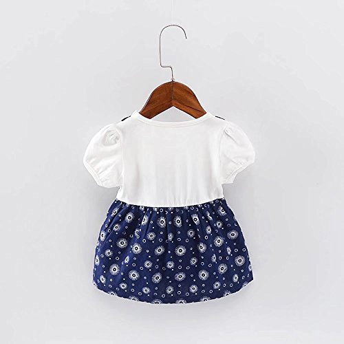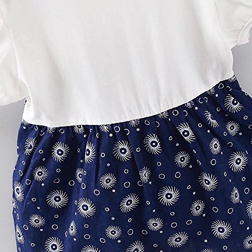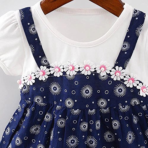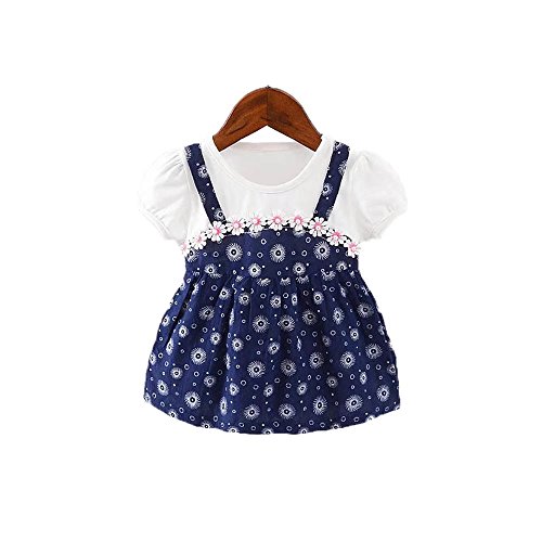 女の子の服 夏 ワンピース Pojour 1-6歳キッズ用 子供かわいいドレス 綿 通気 ブルー(70cm)