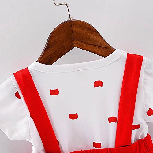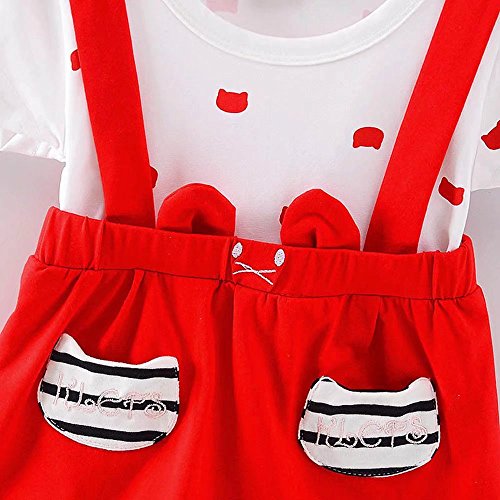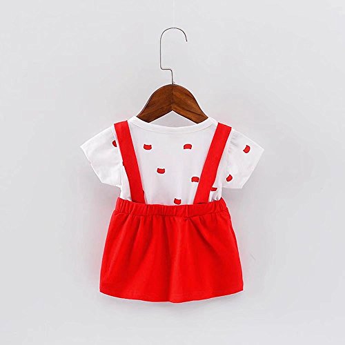 女の子の服 夏 ワンピース Pojour 1-6歳キッズ用 子供かわいいカジュアルドレス 偽セット 綿 通気 赤(80cm)