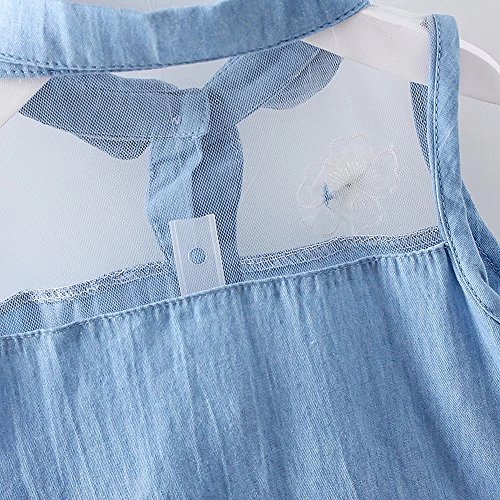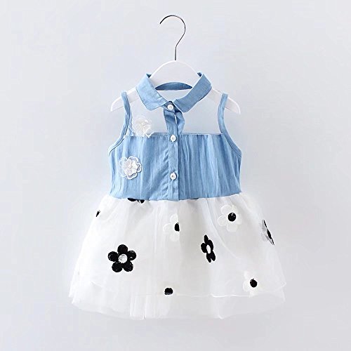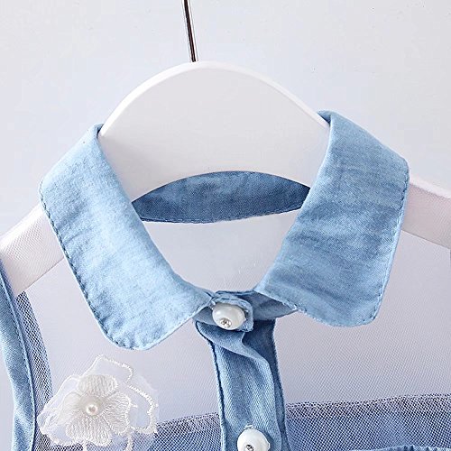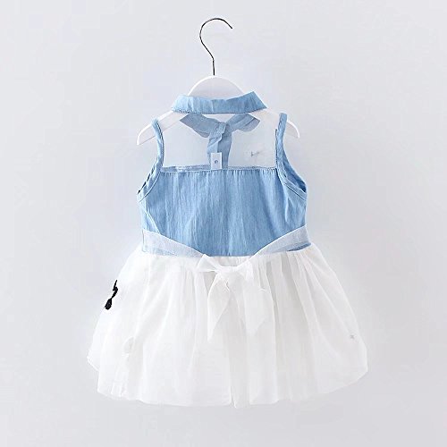 女の子の服 夏 パッチワークワンピース Pojour 1-6歳キッズ用 子供かわいいデニムドレス 綿 通気 白(90cm)