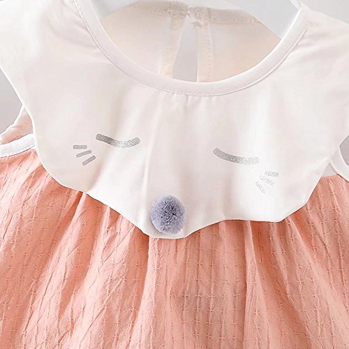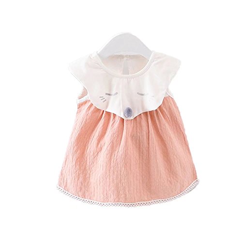 女の子の服 夏 ワンピース Pojour 1-6歳キッズ用 子供かわいい漫画キツネ 綿 通気 オレンジ(80cm)