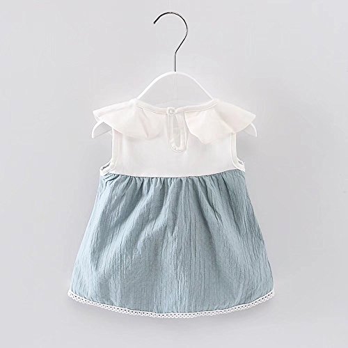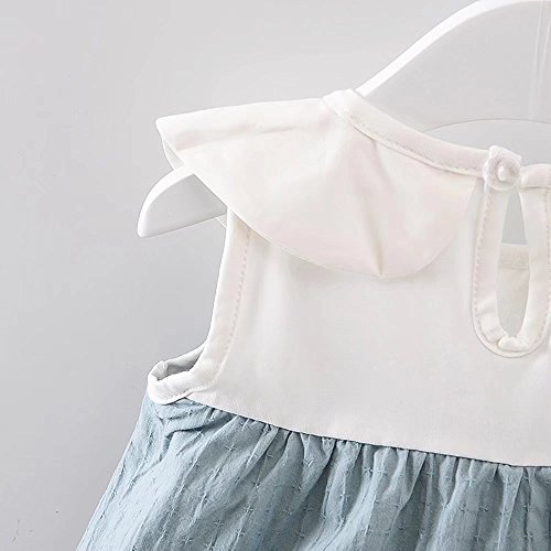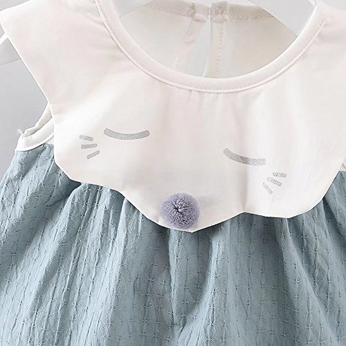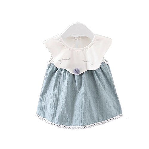 女の子の服 夏 ワンピース Pojour 1-6歳キッズ用 子供かわいい漫画キツネ 綿 通気 水色(100cm)