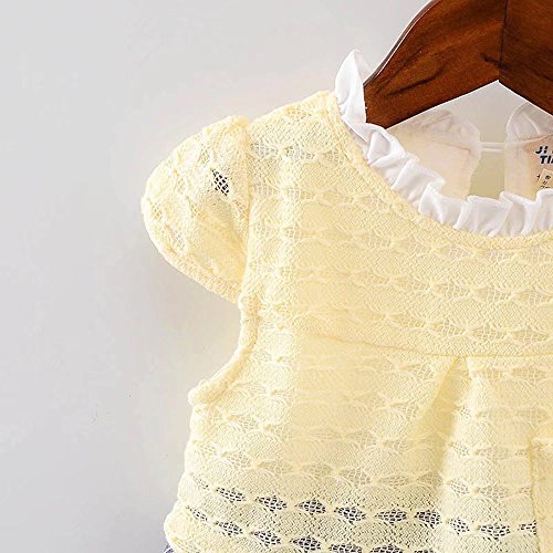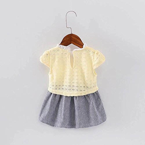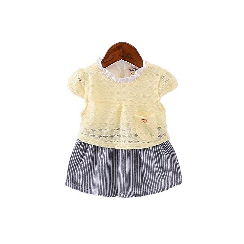 女の子の服 夏 パッチワークワンピース Pojour 1-6歳キッズ用 子供かわいいドレス 綿 通気 黄色(90cm)