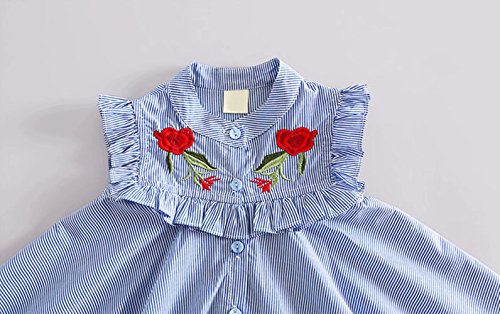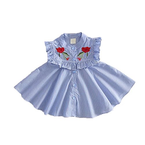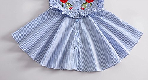 夏ベイビー服 女の子ワンピース Pojour 1-6歳キッズ用かわいい刺繍スカート 子供ギフト 綿 通気 ブルー(70cm)