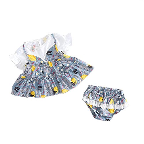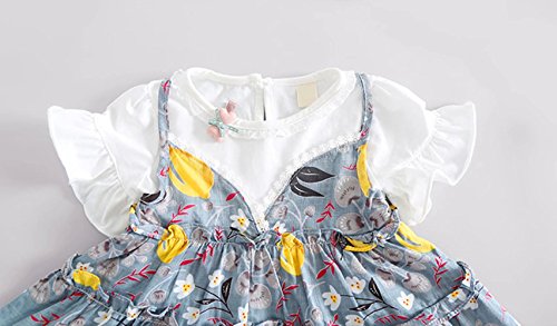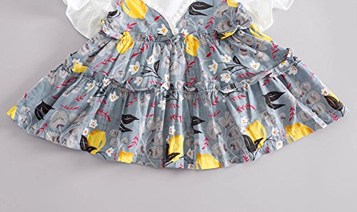 夏ベイビー服 女の子ワンピース Pojour 1-6歳キッズ用かわいい花3セット 子供ギフト 綿 通気 グレー (70cm)