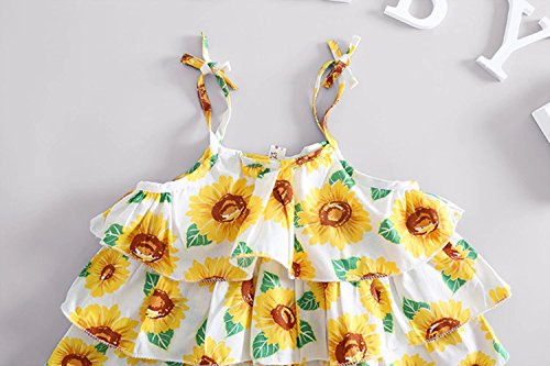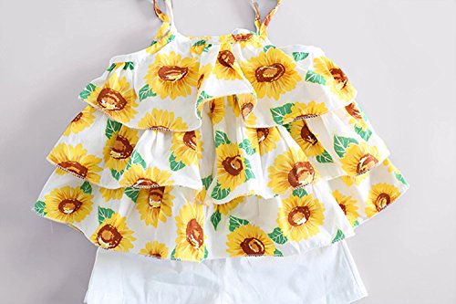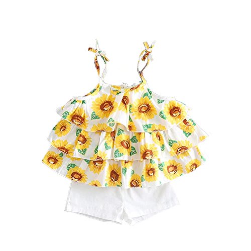 夏ベイビー服 女の子チョッキ Pojour 1-6歳キッズ用かわいい花キャミソール 子供ギフト 綿 通気 ブルー(100cm)