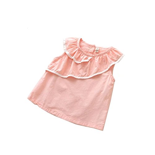 夏ベイビー服 女の子ワンピース 100cm Pojour キッズ用かわいいレースノースリーブドレス 子供ギフト 綿 通気