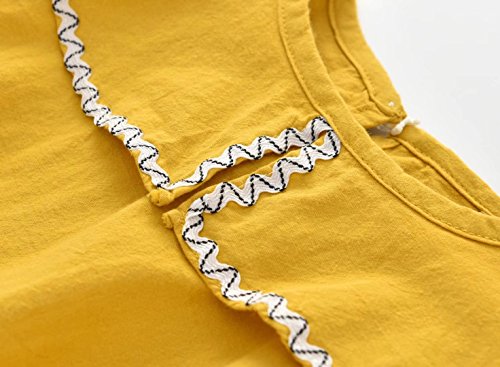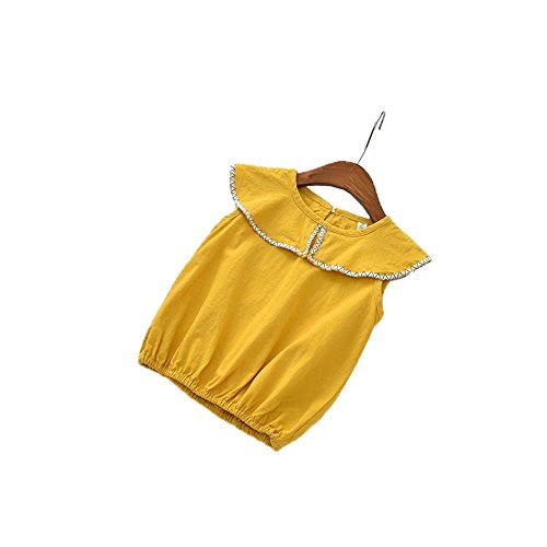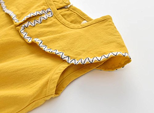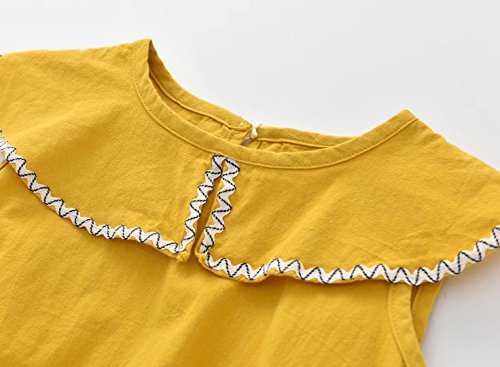 夏ベイビー服 子供ワンピース Pojour 1-6歳キッズ用かわいい服 袖なし 子供ギフト 綿 通気 黄色(90cm)